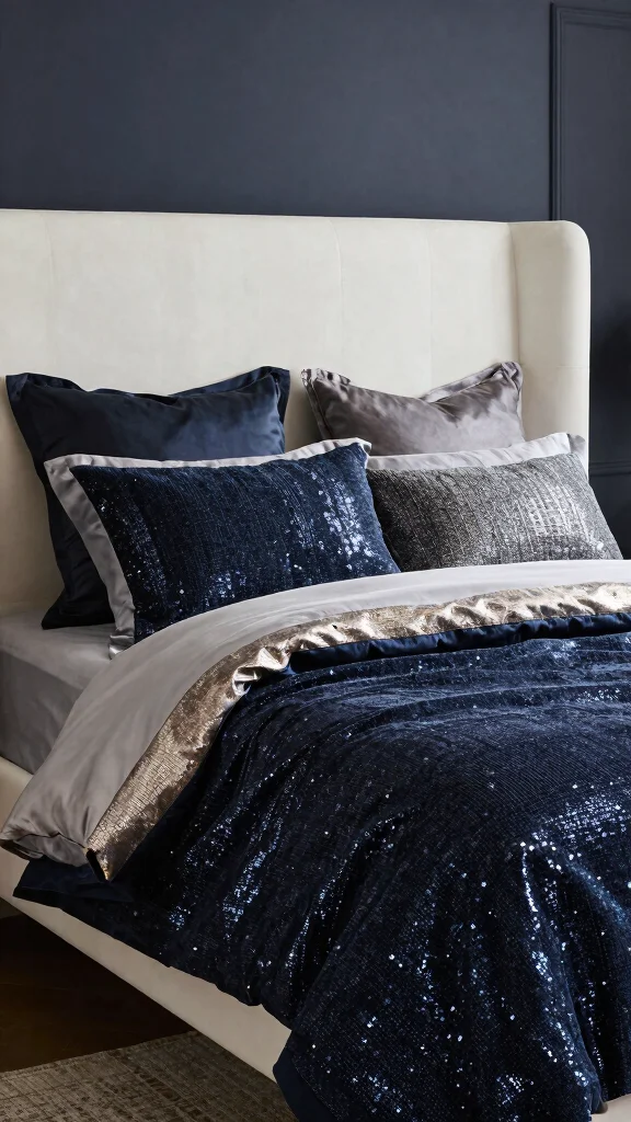 To achieve this glamorous look, balance bold elements with simpler decor to avoid overwhelming the space. Accessories like metallic pillows or throws can add dimension without being overpowering. This approach caters to those looking for a high-end feel in their personal space.