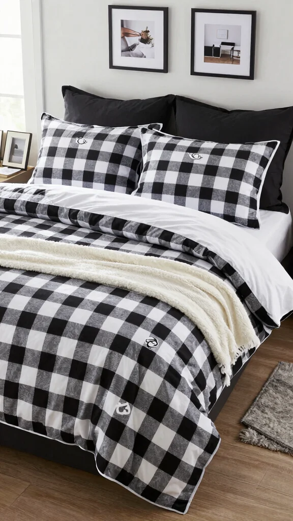 Black and white gingham bedding provides a perfect canvas for seasonal decor changes throughout the year. In winter, you can introduce heavier throws and pillows for a cozy vibe, while lighter fabrics are ideal for summer months. This versatility allows for easy transitions in your decor without major overhauls.