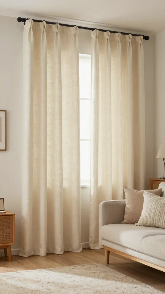 Sustainable linen curtains embody eco-friendly sophistication. Their natural fibers not only block out light effectively but also introduce a beautiful texture that enhances your living room’s allure. The breathable nature of linen allows for a gentle diffusion of light, creating a cozy atmosphere that balances privacy and brightness. Imagine soft, earthy tones or vibrant hues that harmonize with your existing decor, making linen a stylish and responsible choice for your home.