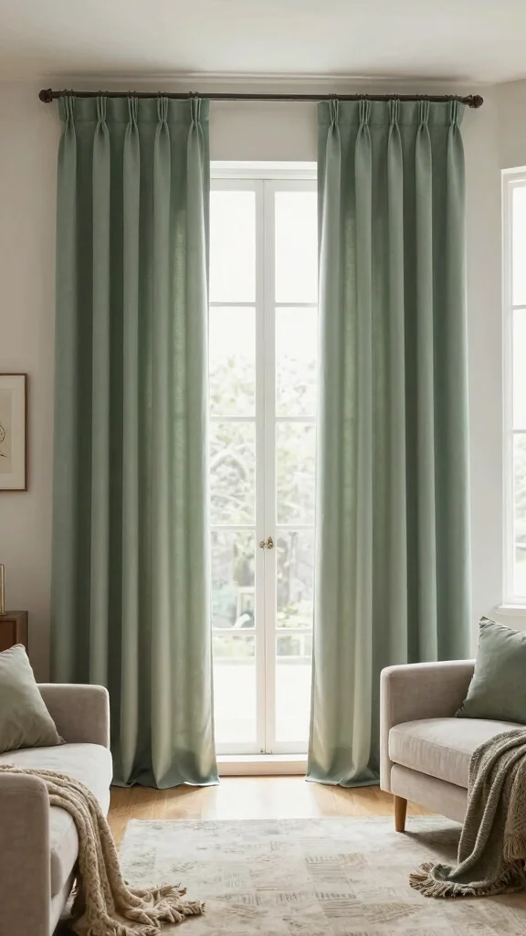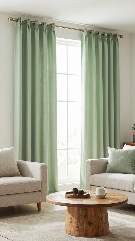 To bring this look to life, consider selecting curtains in soft whites or muted greens that resonate with your space’s palette. You can easily find budget-friendly options at local thrift shops or online marketplaces. This sustainable fabric not only offers aesthetic appeal but also contributes to a healthy planet.