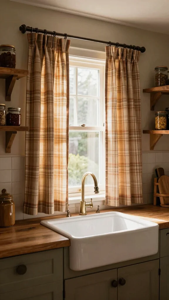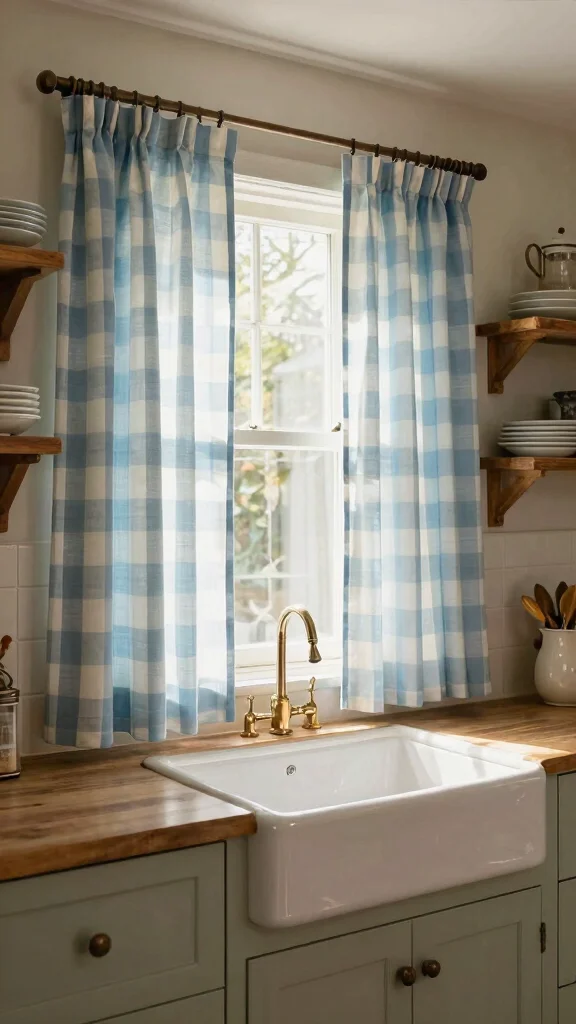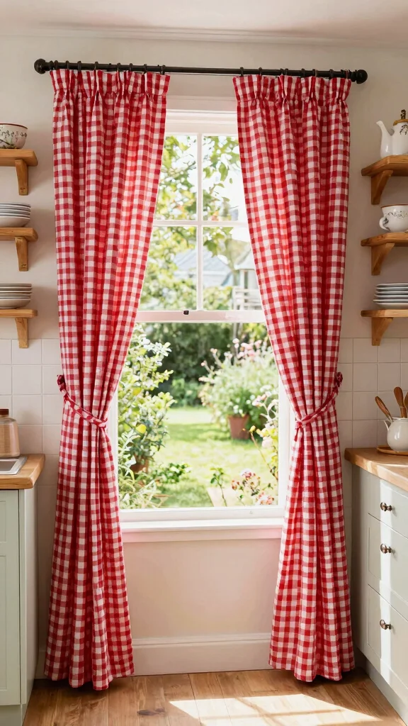 To style vintage check cafe curtains, pair them with rustic wooden elements for a cohesive look. Soft, muted colors create a more subtle effect, while layering with solid colors can enhance visual interest. Incorporating other check patterns in your kitchen accessories ties the look together beautifully.