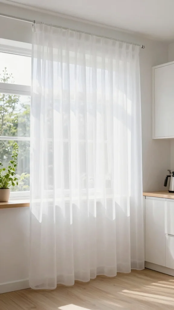 Charming Lace Cafe Curtains: These delicate curtains add a vintage touch, filtering light beautifully while enhancing your kitchen’s character.