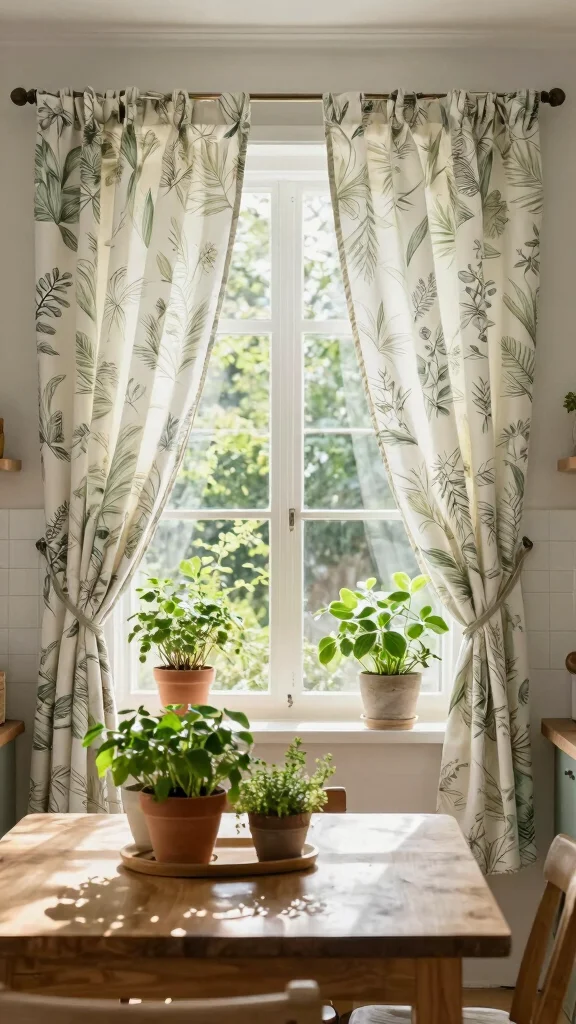 When selecting floral prints, match the colors to your kitchen’s existing scheme for a harmonious look. Layering with solid drapes can create a textured feel, and choosing colors that reflect natural light will brighten your space even more.