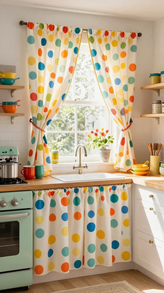 Playful polka dot cafe curtains can transform your kitchen into a lively space, perfect for enjoying sweet moments.