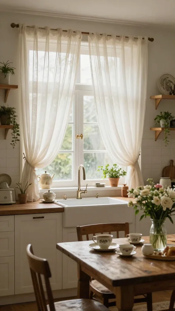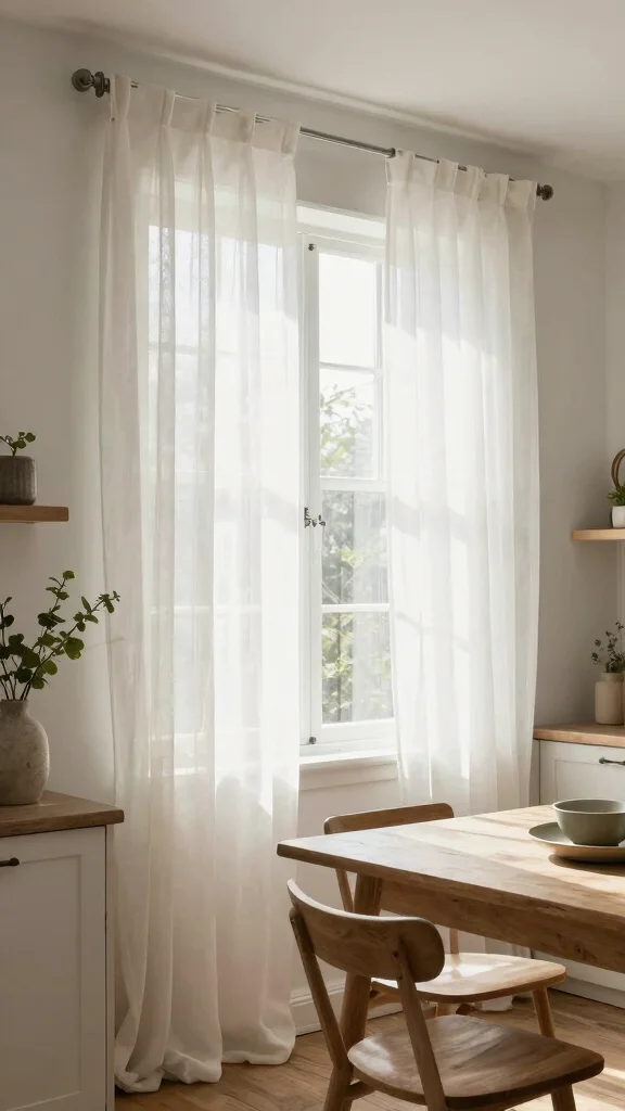 Sheer curtains create a light and airy ambiance, making your kitchen a welcoming and bright space.