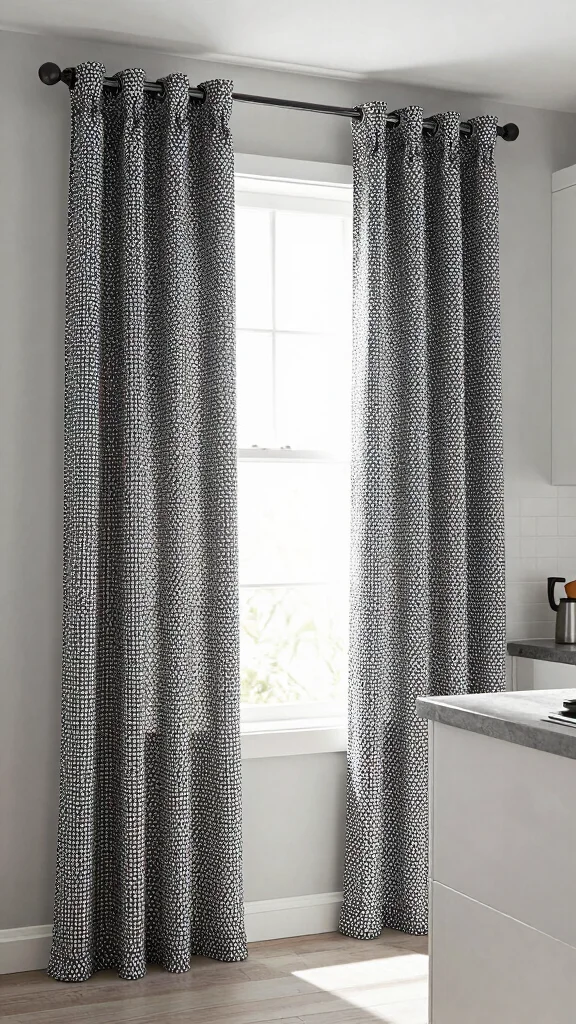 Monochrome curtains bring a chic, stylish vibe to your kitchen, making it feel contemporary and inviting.
