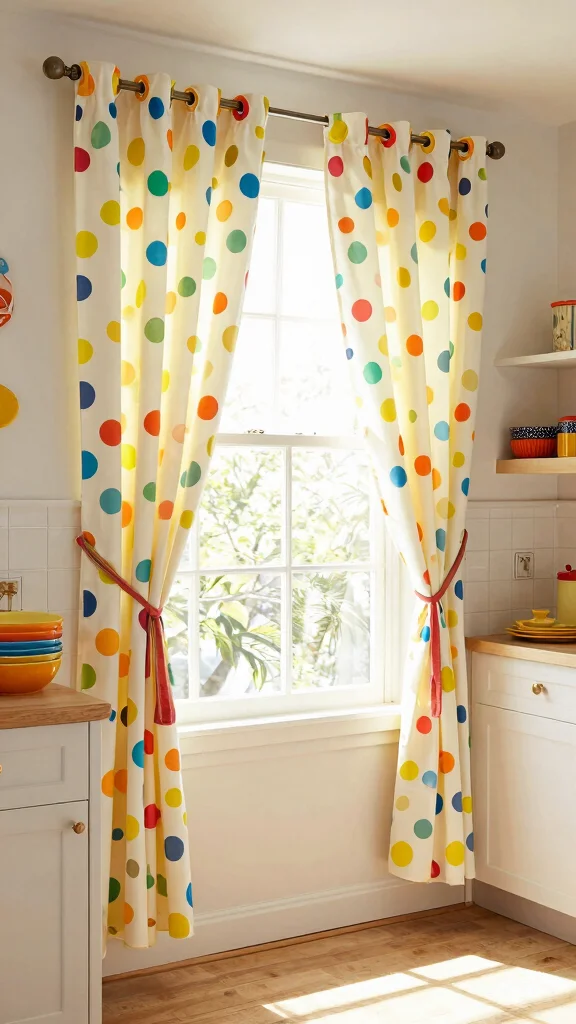 To enhance the playfulness, combine these curtains with bright dishware that contrasts against the dots. A solid color tablecloth can also create balance, ensuring the patterns don’t overwhelm the space.