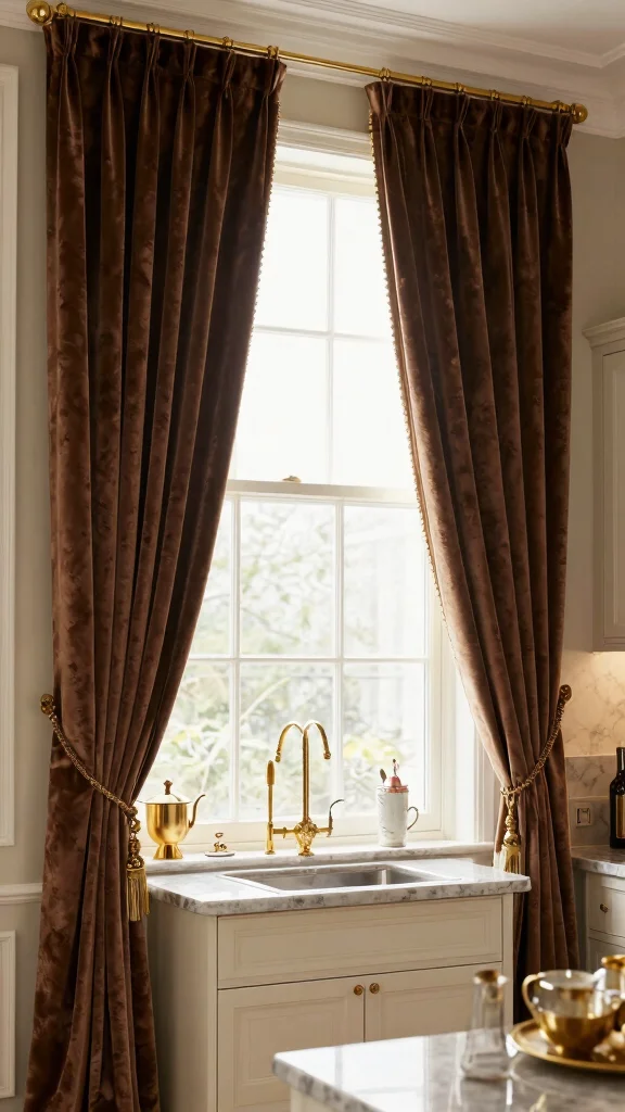 Velvet curtains can become a stunning focal point in your kitchen, elevating the space with sophistication and warmth.