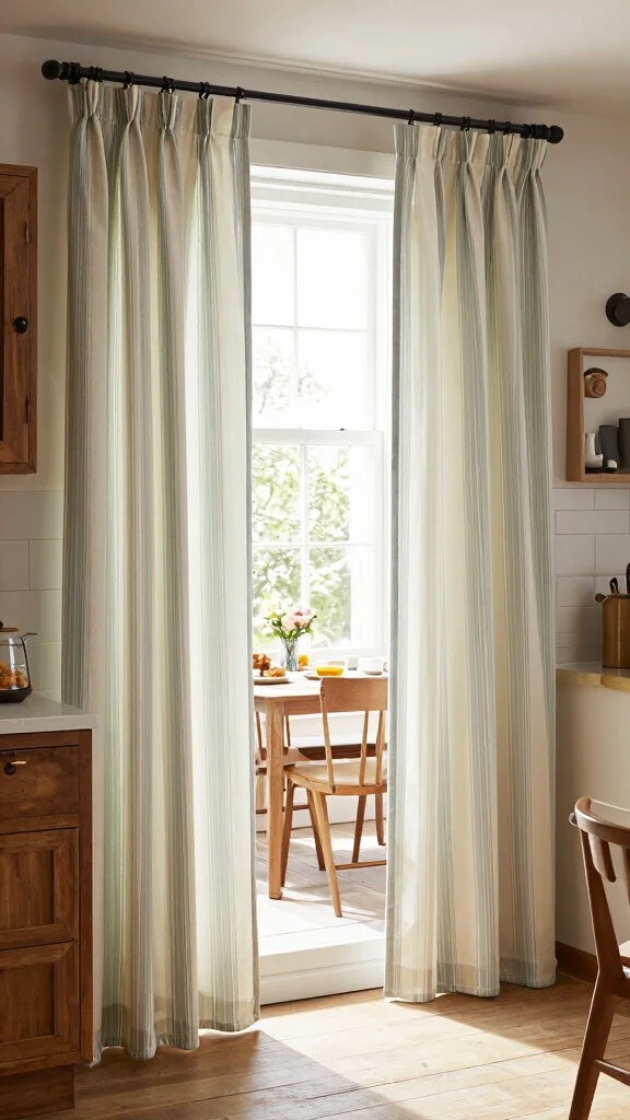 Striped curtains can serve as a captivating backdrop in your kitchen, enhancing the decor while drawing the eye.