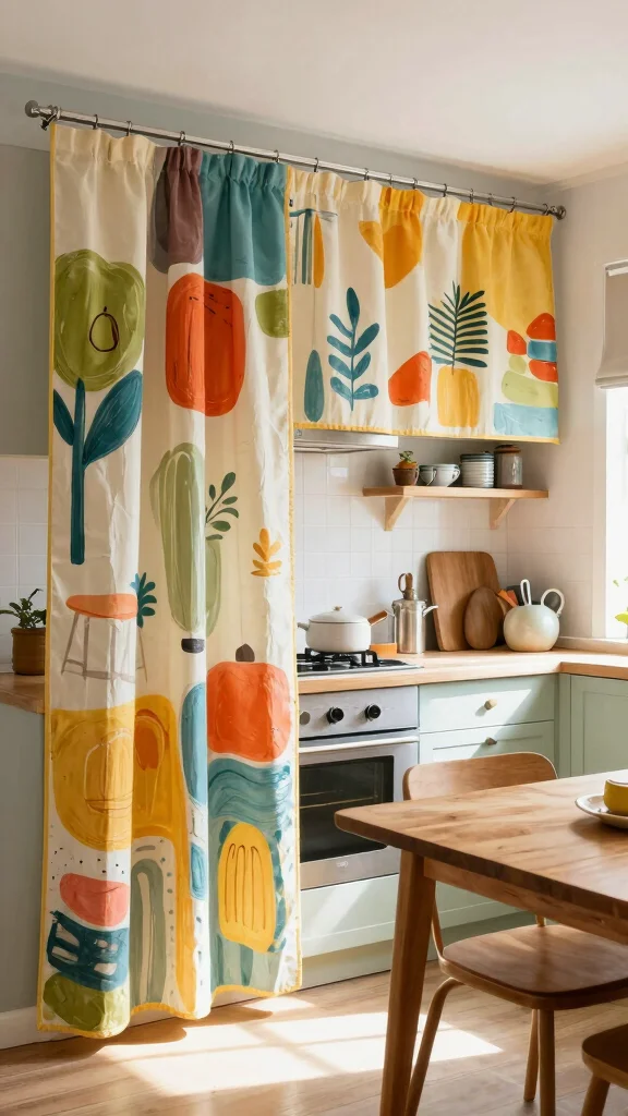 Artistic patterned curtains can invigorate your kitchen, making it a vibrant space filled with creativity and joy.