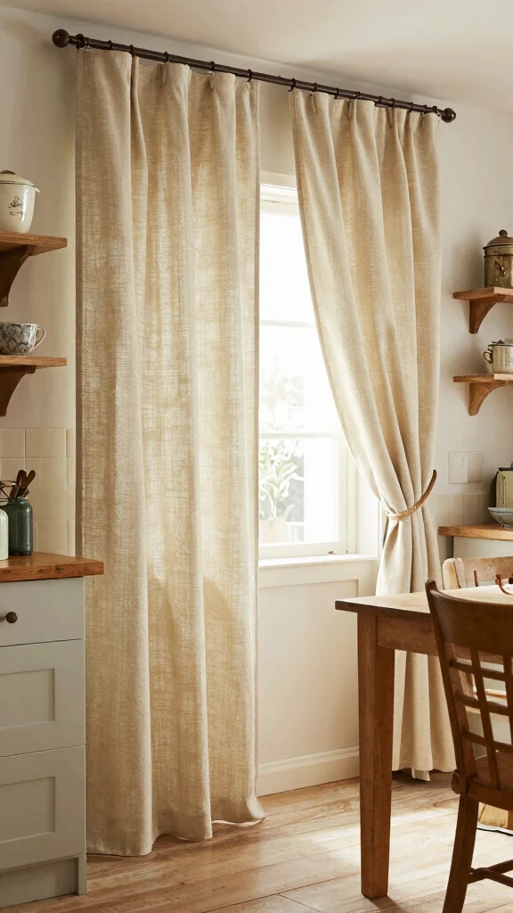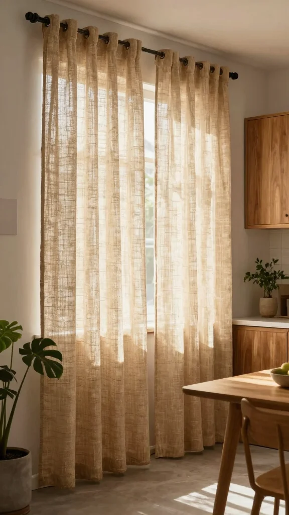 Natural fiber curtains, such as jute or hemp, connect your kitchen to the outdoors with an eco-friendly touch. These fabrics provide a raw, organic feel while allowing light to cascade gently into the space. Their versatility makes them an excellent fit for various decor styles, from vintage to modern.