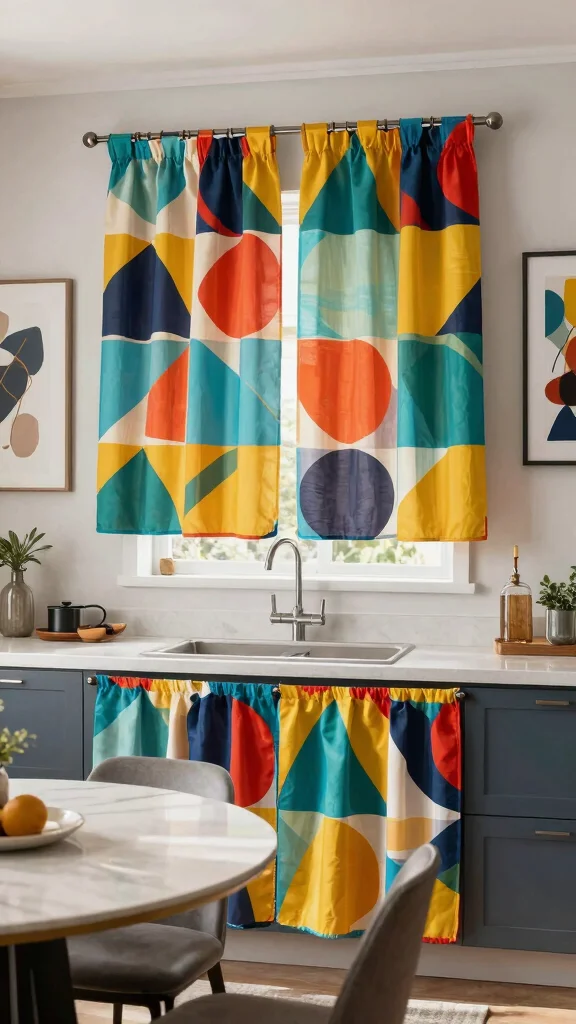 Bold geometric curtains can energize your kitchen, making every cooking experience more exciting and enjoyable.