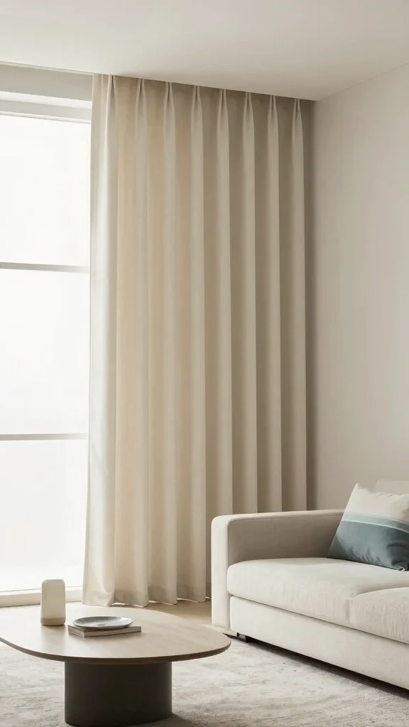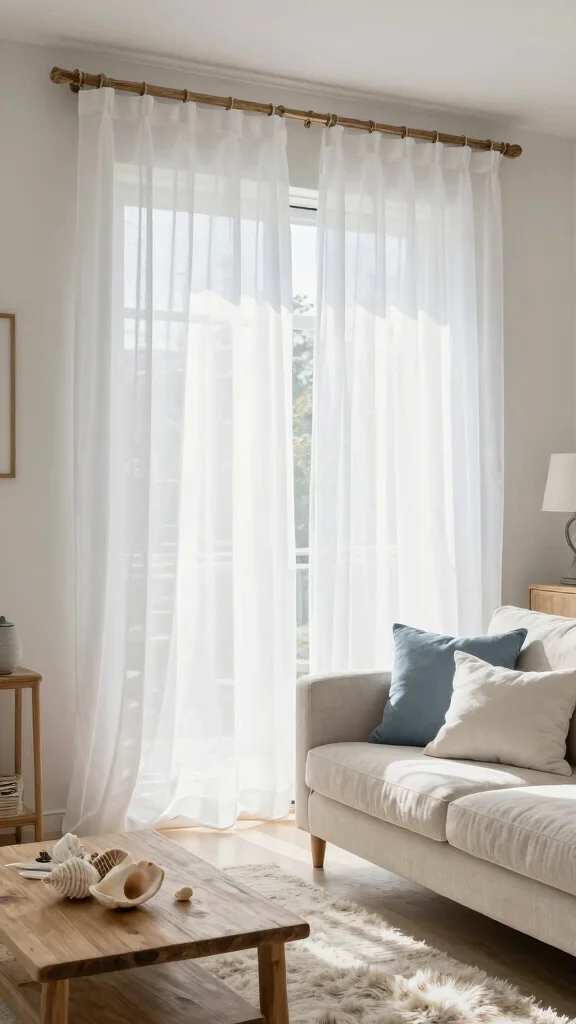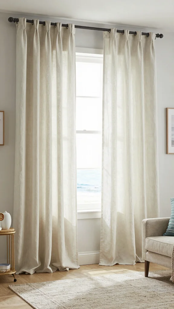 Minimalist curtains provide a chic foundation for your coastal decor, allowing other elements to shine without overshadowing them.