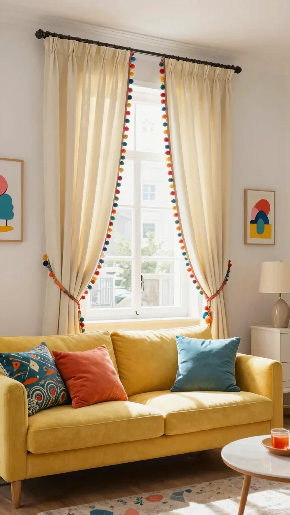 Add a playful twist to your curtains with pom-pom trim! This fun detail can inject a sense of whimsy into your living room while preserving that breezy coastal vibe. Available in various colors, pom-pom curtains can create a lively atmosphere that perfectly complements your beachy decor. They’re particularly suited for casual spaces where you want to cultivate a joyful, relaxed feel.