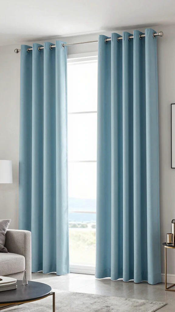 Ocean-colored curtains bring a serene touch to your space, making your living room a soothing seaside retreat.