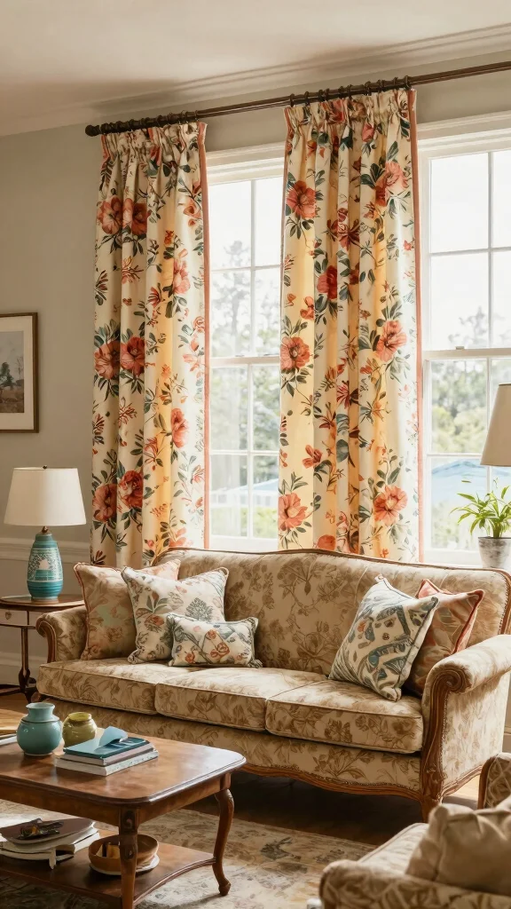 Vintage chic curtains infuse your living room with warmth and personality, making it a welcoming retreat for all.