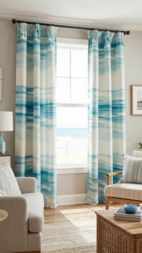 This post is perfect for anyone looking to infuse their living room with beachy decor or nautical themes. Whether you’re redecorating or just want to refresh your window treatments, you’ll find something here that speaks to your style. From light filtering curtains that let in a soft glow to bold prints that make a statement, these ideas will help you achieve the coastal look you crave.
