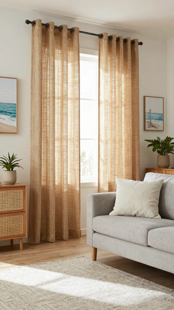When choosing these curtains, ensure the fabric is lightweight to maintain that breezy ambiance. Select colors that reflect the sea or sand for a cohesive theme, and pair with simple curtain rods that blend seamlessly into your overall decor.