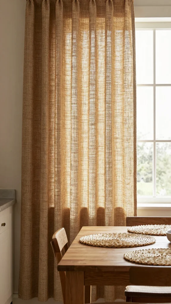 Fun fact: Switching to hemp or cotton woven curtains can reduce glare by up to 40%. They add rustic texture to your kitchen window and take under 30 minutes to hang.