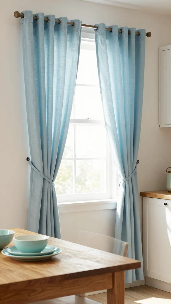 If privacy is a priority, minimalist blackout curtains made from sustainable materials are your best bet. These curtains effectively block light while offering a sleek, modern look. They’re ideal for kitchens needing extra coverage during the day or for those who enjoy sleeping in. Opt for solid colors to achieve a sophisticated vibe that complements other decor.