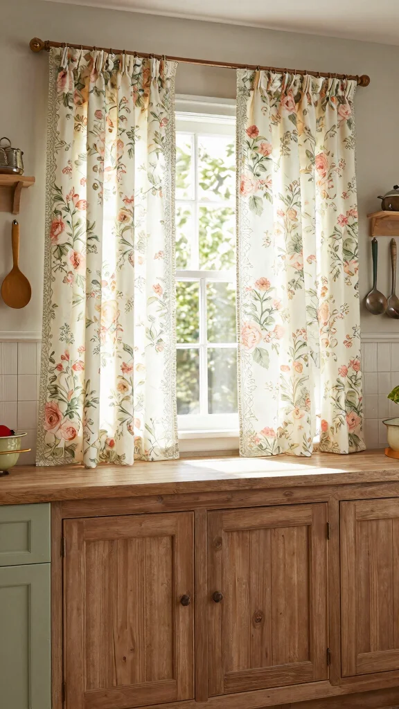 Introduce nostalgia with vintage floral curtains, adding warmth and character to your kitchen. These charming designs often feature eco-friendly fabrics, perfect for those looking to enhance their decor sustainably. They foster a soft, romantic atmosphere that pairs beautifully with rustic or farmhouse-style elements. Choose muted colors for an authentic vintage feel, or opt for brighter florals to make a cheerful statement.