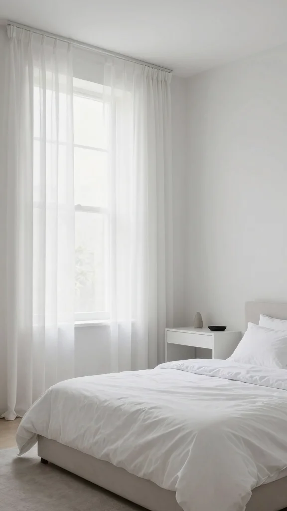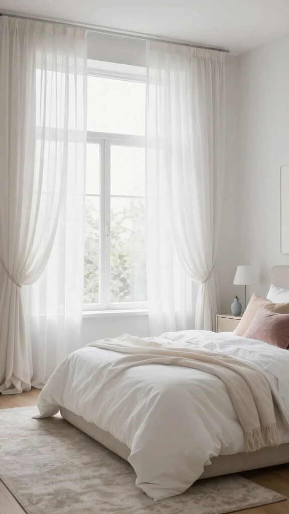 Opt for soft sheer curtains to create a dreamy atmosphere that complements white bedding beautifully.