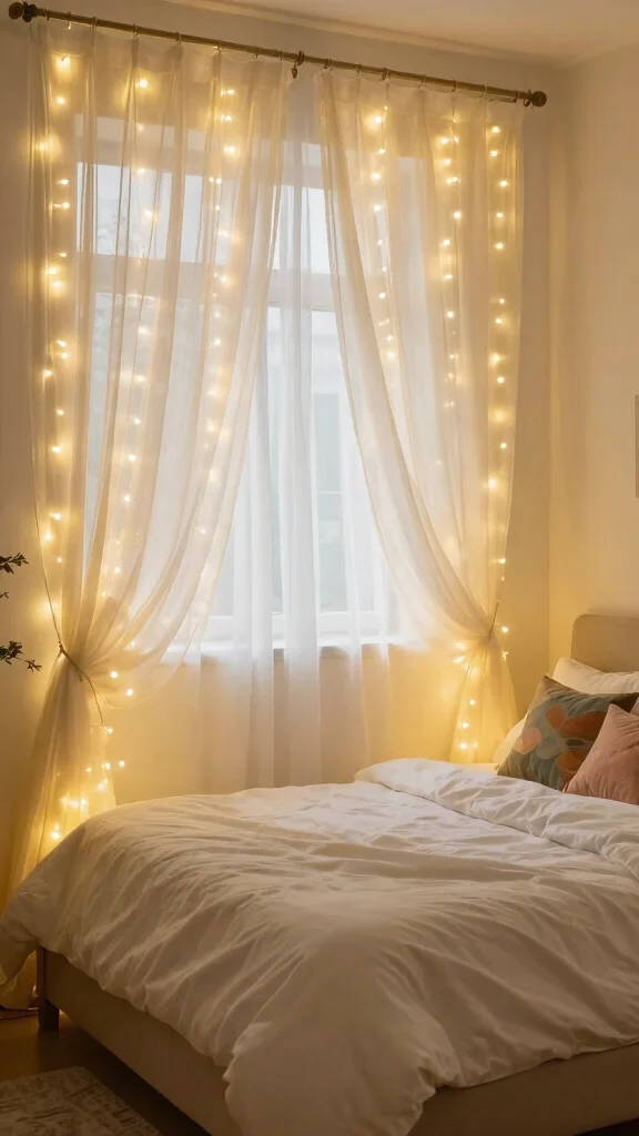 11. Twinkling Fairy Lights Behind Curtains