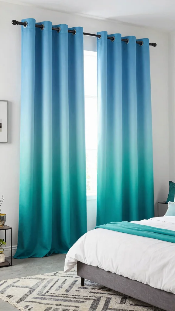 Ombre curtains work best when the darker shade is at the bottom, creating a grounding effect. Consider using colors found in your bedding for a harmonious touch.