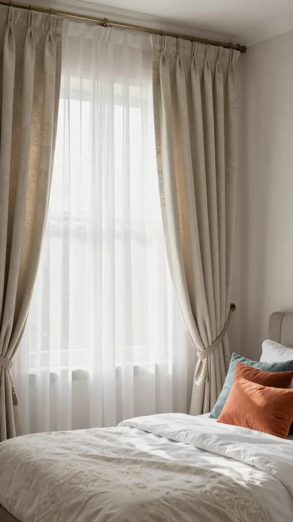 Layering is your friend. Start with a light, airy sheer in a neutral close to white, then add a slightly darker curtain in the same family to create subtle contrast while keeping cohesive home decor. Use a double curtain rod to switch between sheer and shade as needed. Make sure undertones align with your white bedding; if the bedding has warm undertones, pick warm ivory; if cool, choose cool beige. Finish with hardware in a matte metal or wood finish that matches other furniture for a seamless look.