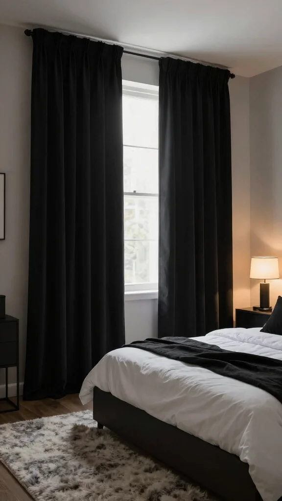 Fun fact: curtains with white bedding in a monochrome palette can make a room feel 30% calmer and more cohesive. Use shades like charcoal, navy, or burgundy to add depth, then layer textures for a polished, modern look.