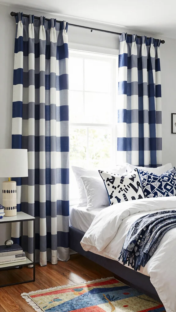 Striped curtains can create the illusion of height, making your bedroom feel larger and more open. Vertical stripes draw the eye upward, enhancing the perception of space.