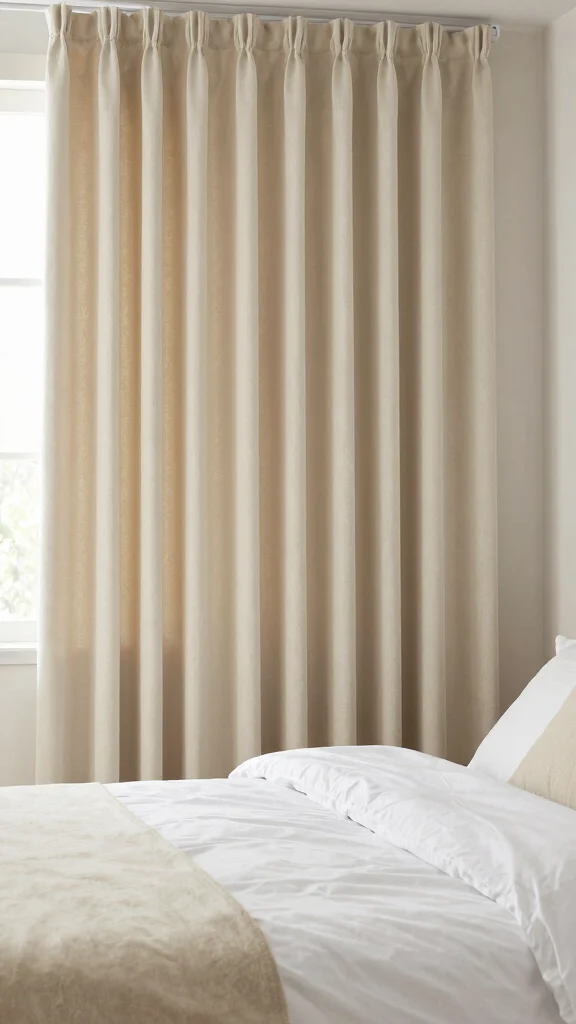 Stick to clean lines and minimal embellishment. Solid colors in ivory, beige, greige, or soft taupe complement white bedding ideas without overpowering them. Choose natural fabrics like linen or cotton with subtle texture for depth. Consider layering with a sheer panel for soft light or a blackout panel for privacy, both in a neutral shade to support cohesive home decor. For bedroom decor tips, pick header styles such as rod-pocket or back-tab to maintain sleek, minimalist curtain designs that work with matching curtains and bedding.