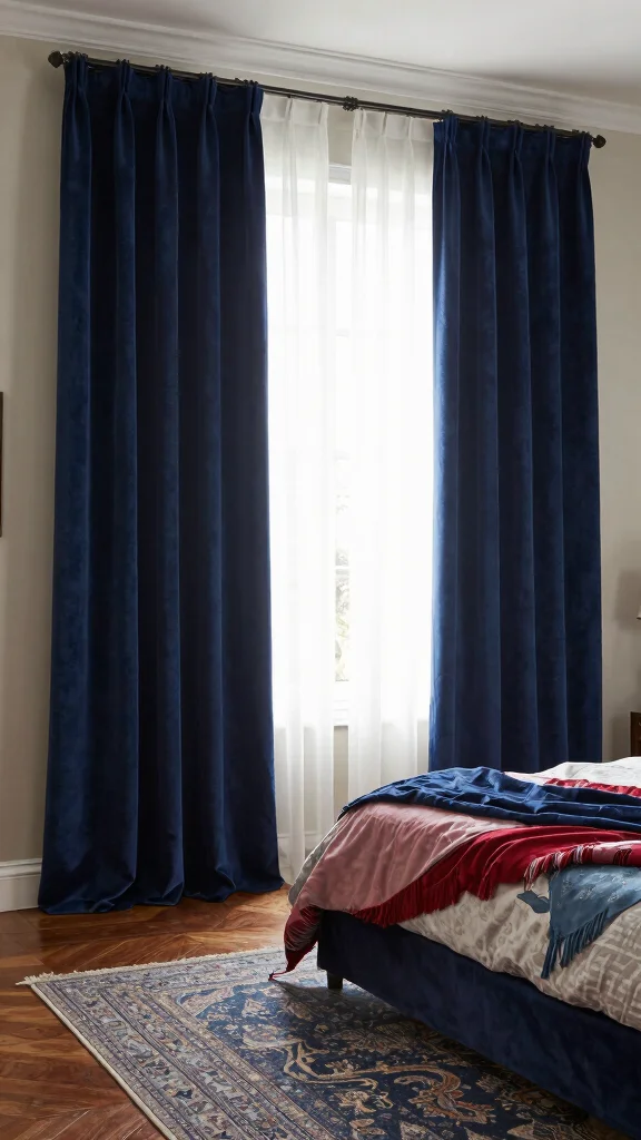 Layering is key for cozy curtain styles that still feel luxurious in a bedroom. Start with a sheer panel for soft light, then add a heavier fabric in a rich color or subtle texture to create depth in your floor length curtains bedroom. Choose fabrics with elegant drape—velvet, crushed satin, or bonded mohair—made from sustainable sources if possible to keep it eco-friendly. Don’t forget hardware: a quality rod and tailored pleats or tabs pull the look together, reflecting interior design inspirations.