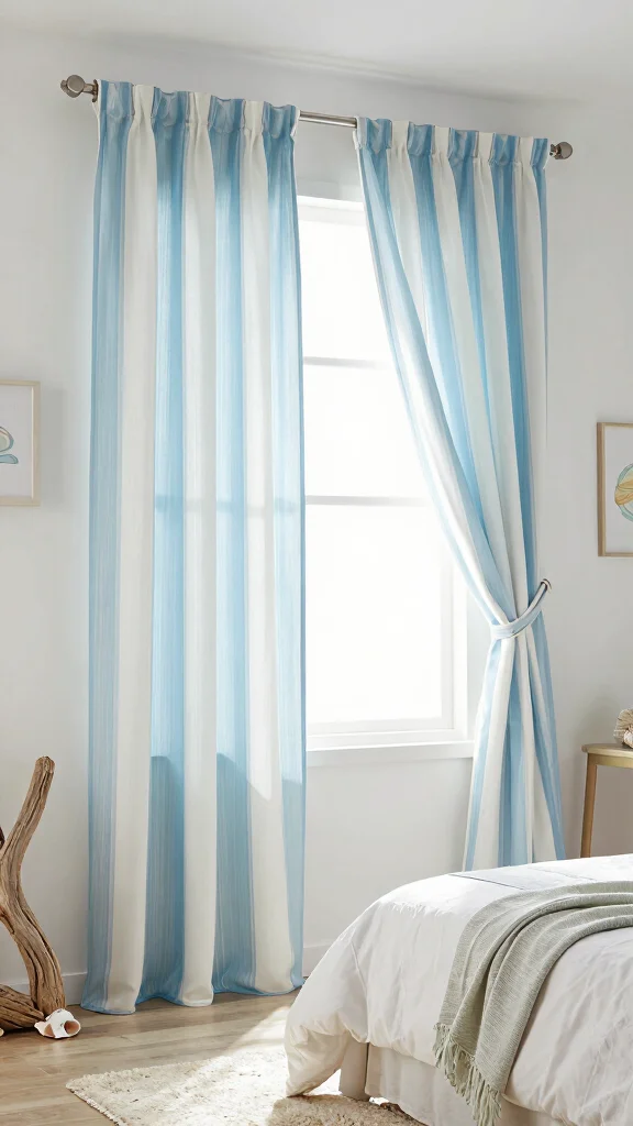 15. Coastal Vibes with Striped Curtains