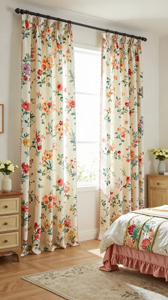 Vintage floral curtains can infuse your bedroom with charm and a nostalgic touch. These curtains often showcase colorful, intricate designs that add whimsy and warmth to your decor. Opt for eco-friendly materials that feature beautiful floral patterns, creating a cozy environment that invites relaxation.
