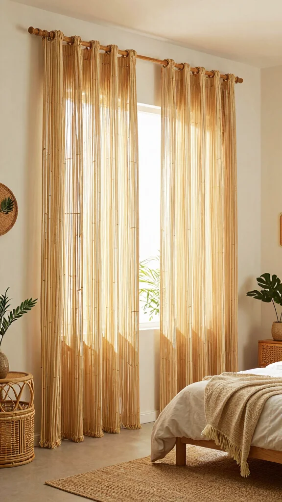 Honestly, bamboo floor length curtains bedroom vibes feel like a vacation at home. They soften light, boost privacy, and pair with rattan for a natural, eco-friendly retreat you’ll actually keep tidy.