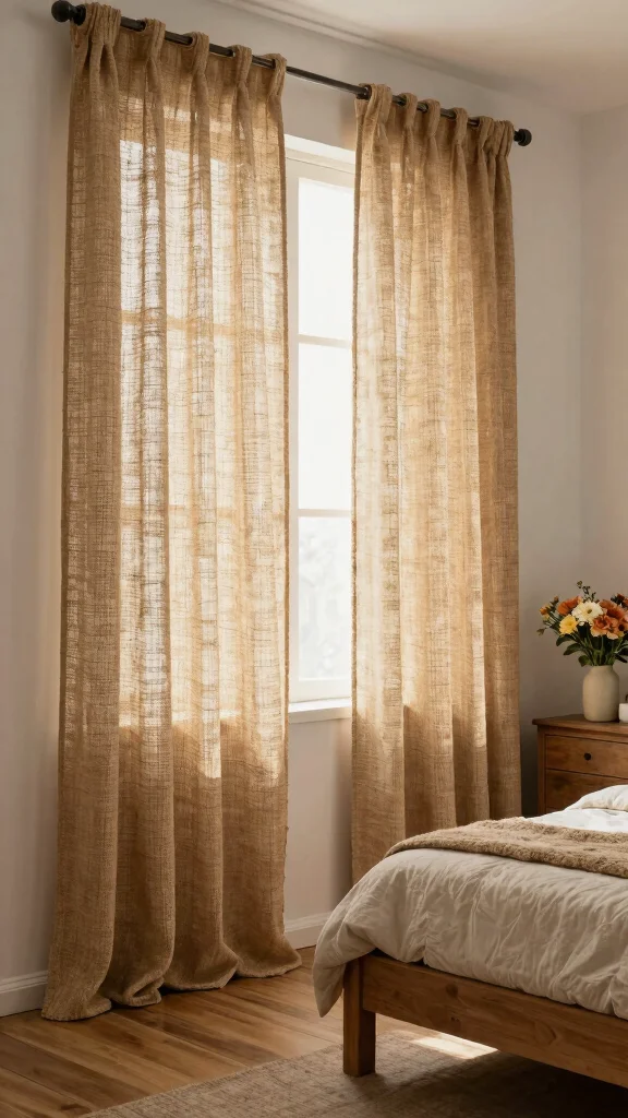 For a rustic aesthetic, jute curtains offer an eco-friendly and charming option that enhances your bedroom’s warmth. The natural fibers of jute create a unique texture that adds depth while allowing light to filter through gently. Picture light, woven jute curtains that invite a warm glow into your space, establishing a cozy atmosphere.