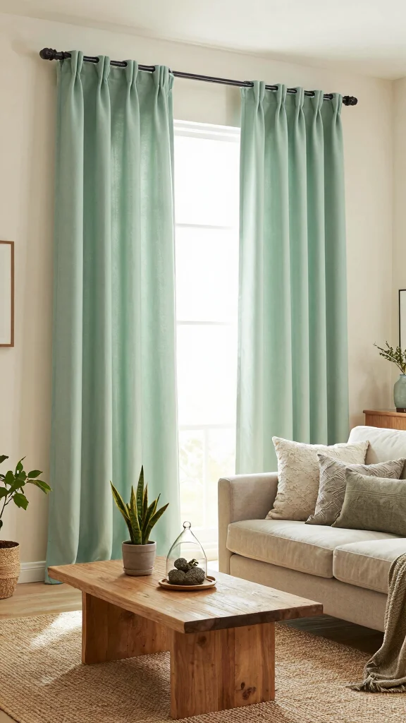 Sage green curtains introduce a calming, earthy vibe that can transform your living space into a serene sanctuary. This gentle hue works beautifully with neutral tones and natural materials, creating visual harmony. Imagine soft sage curtains framing a window next to a wooden coffee table, bringing the tranquility of nature indoors.