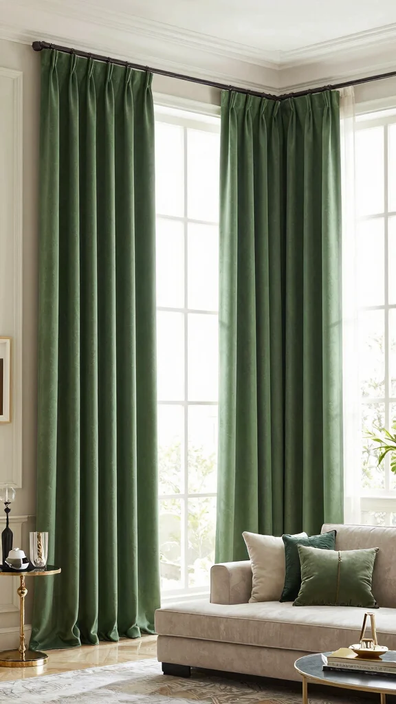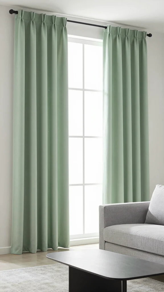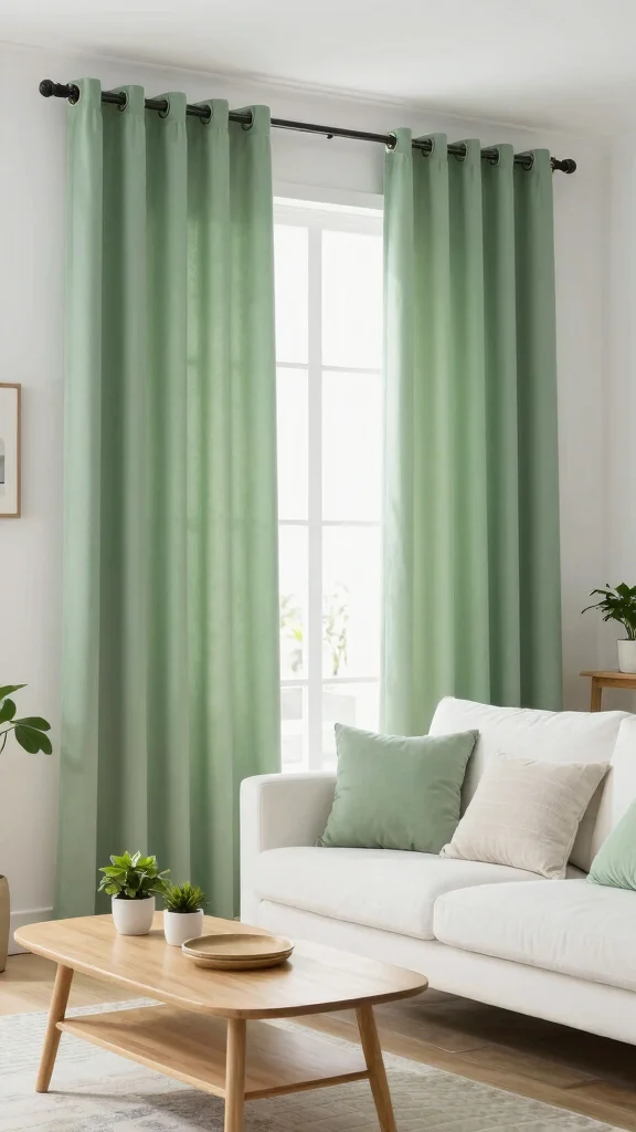 For lovers of simplicity, minimalist green curtains can provide a perfect touch to your decor. Opt for solid, muted greens that blend seamlessly, resulting in a clean and modern aesthetic. Imagine streamlined curtains framing a window, enhancing the tranquility of your living room.