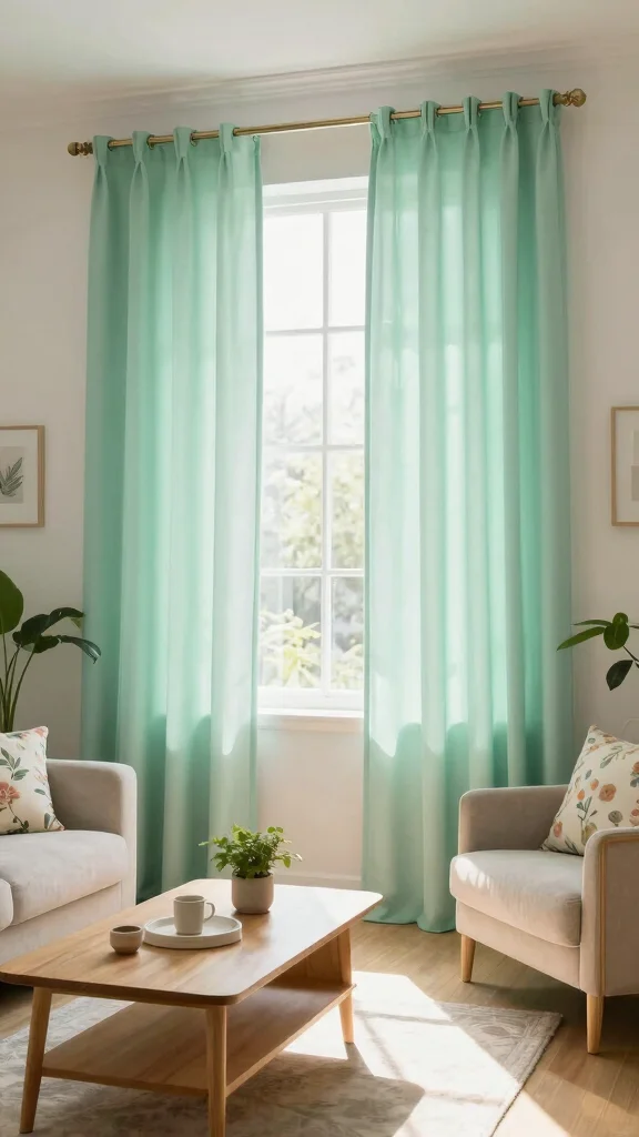 For a successful implementation, keep your furniture arrangement minimal to highlight the beauty of the mint curtains. Incorporate floral patterns in cushions or wall art to enhance the fresh vibe while utilizing budget-friendly accessories.