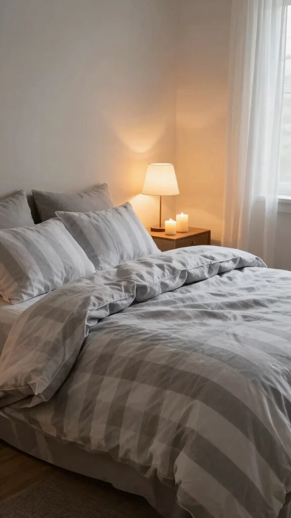 Creating a warm and cozy atmosphere goes beyond your bedding; lighting plays a vital role. Soft, ambient lighting enhances the calming effect of grey and white striped bedding. Consider using bedside lamps with warm bulbs or strategically placed fairy lights to achieve a magical ambiance.