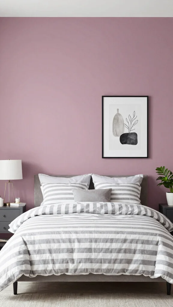 Great options include cool neutrals like dove grey walls with white trim for a crisp look, or a soft blue-grey backdrop that adds depth while staying serene. You can also pair with charcoal accents for contrast or keep everything light with ivory and pale greys to emphasize modern calm. Use limited color accents—perhaps a muted blue pillow or a natural wood nightstand—to maintain a minimalist home decor vibe while keeping grey and white striped bedding as the focal point.