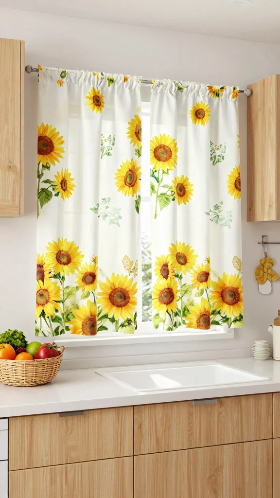 To enhance this floral theme, pair your curtains with matching tablecloths or kitchen linens. A simple wooden curtain rod can add a rustic touch, emphasizing the cozy feel. Opting for sheer floral curtains allows sunlight to filter through while maintaining your privacy, perfect for sunlit kitchens.