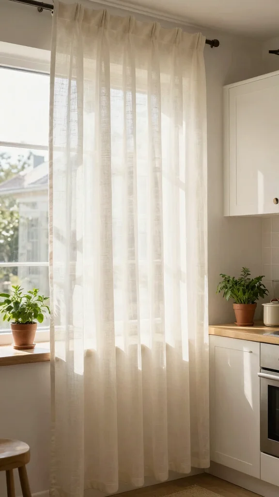 Light-filtering sheers create a serene, sunlit environment in your kitchen, enhancing its overall appeal.