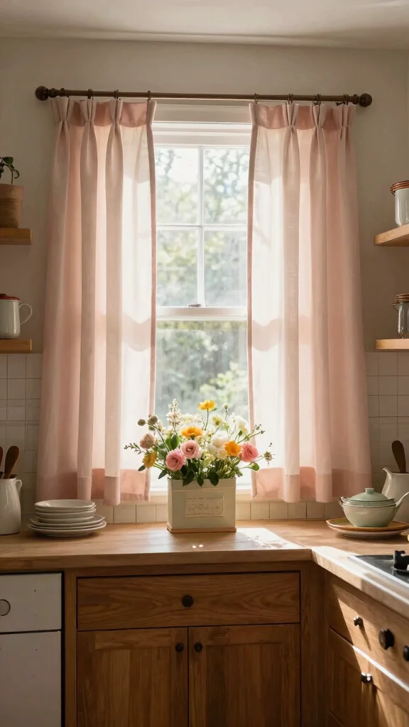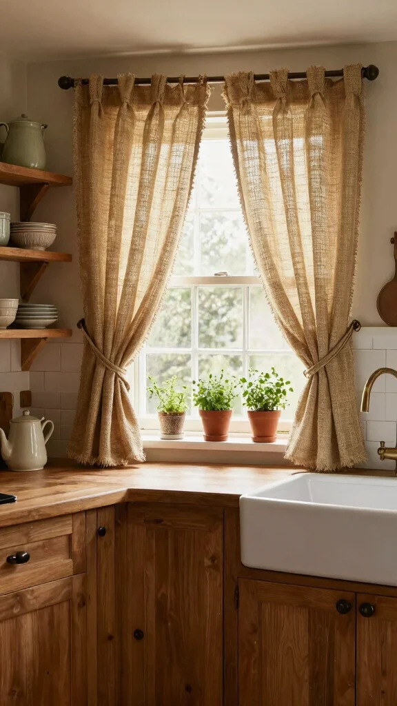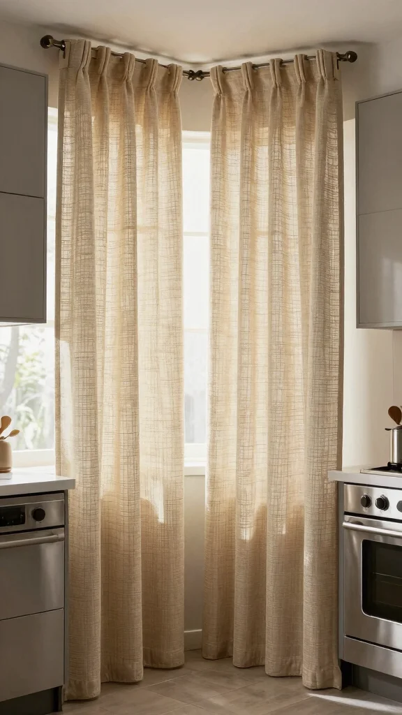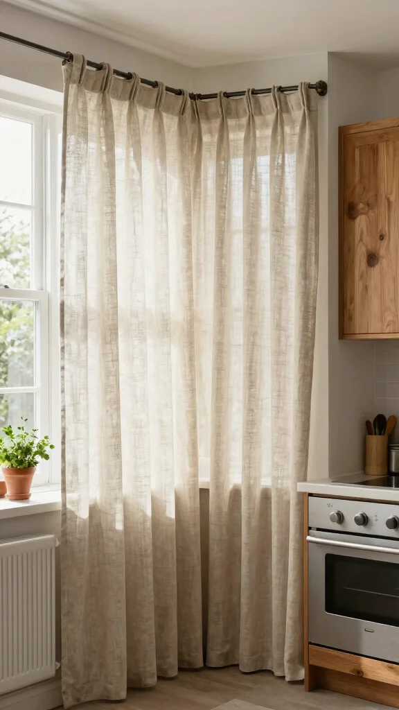 Natural linen curtains offer timeless elegance, enhancing the overall aesthetic of your kitchen while providing a cozy atmosphere.