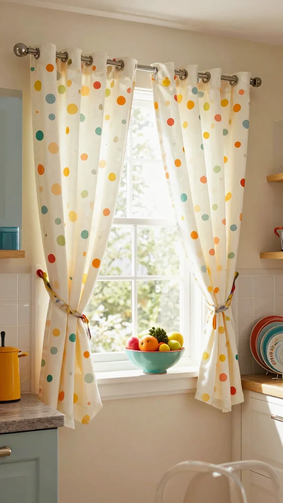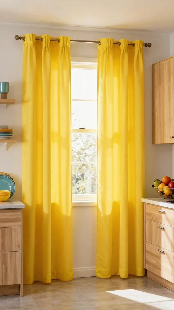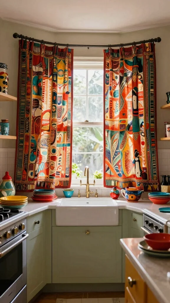 Bright-colored curtains complement modern or eclectic kitchen designs, making the environment feel cheerful and inviting.