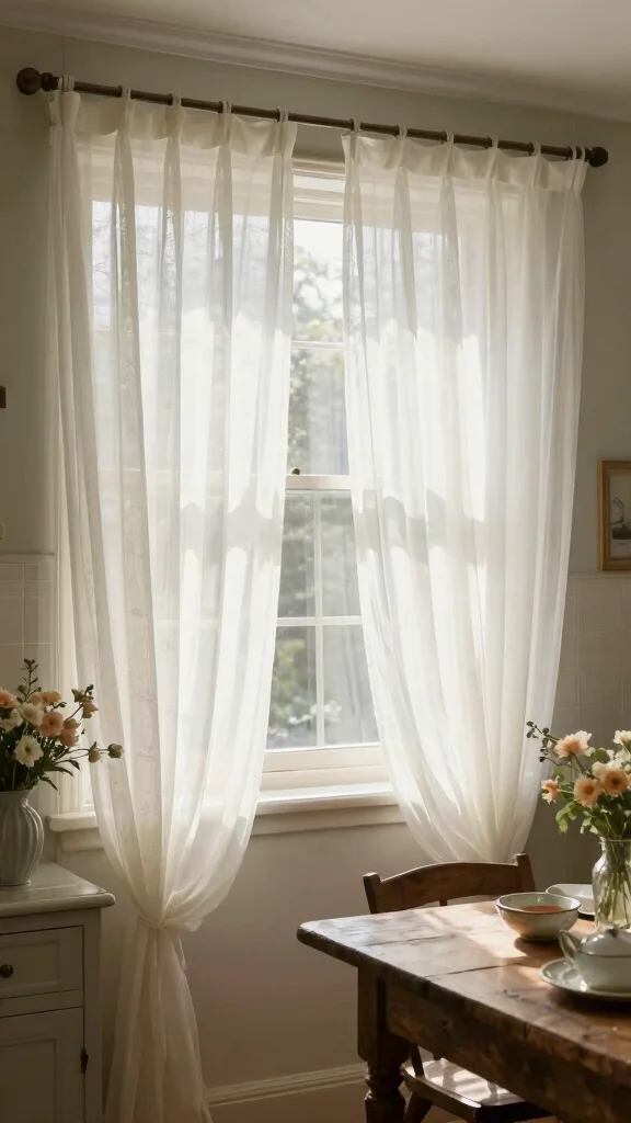 Sheer curtains are ideal for modern kitchens, allowing simplicity and elegance to shine through while adding a touch of charm.