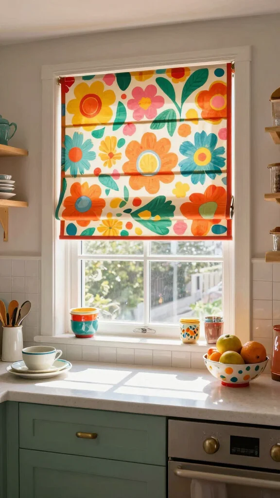 – Don’t shy away from colorful roman shades or whimsical designs—they can serve as bold focal points in your kitchen decor.