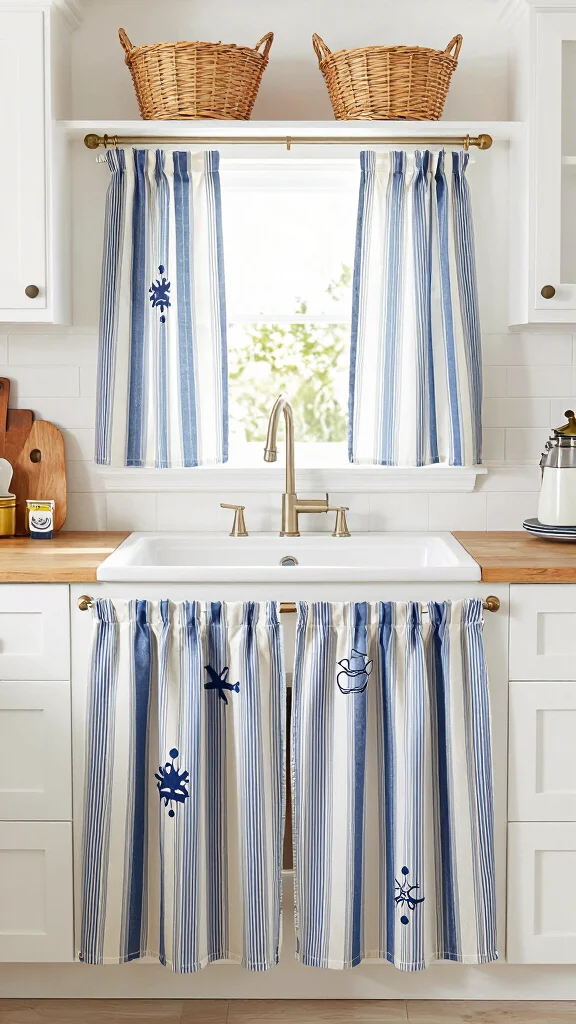 Nautical curtains can transform your kitchen into a cheerful retreat while keeping everything organized and stylish.