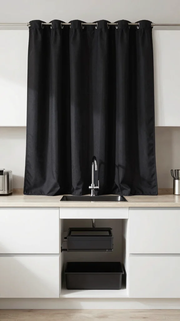 Chic blackout curtains can transform your under-sink area into a stylish storage solution, merging privacy with functionality.